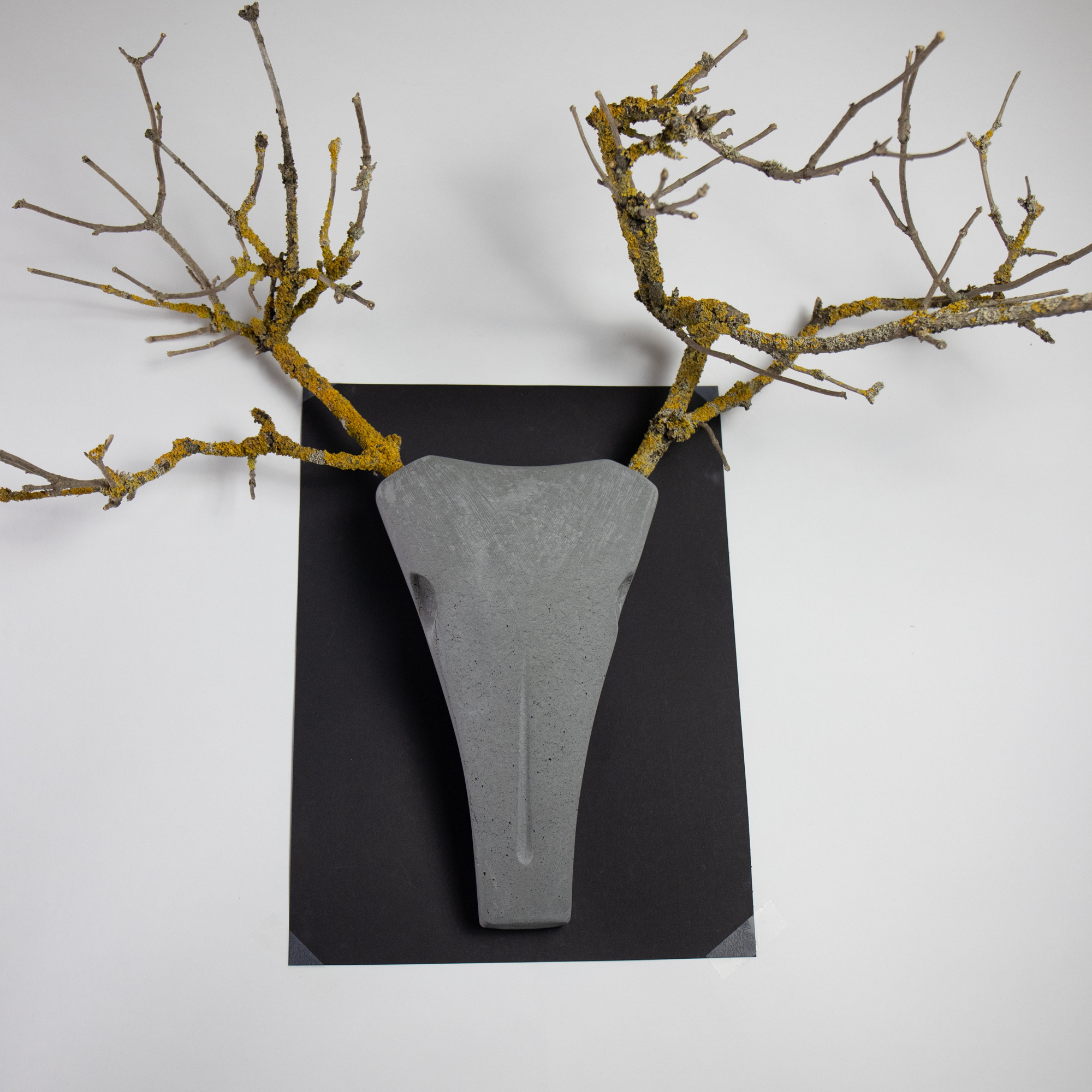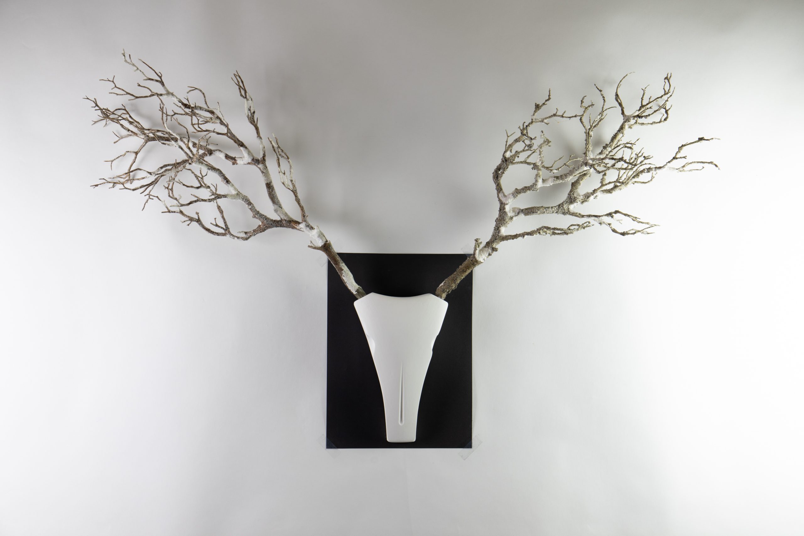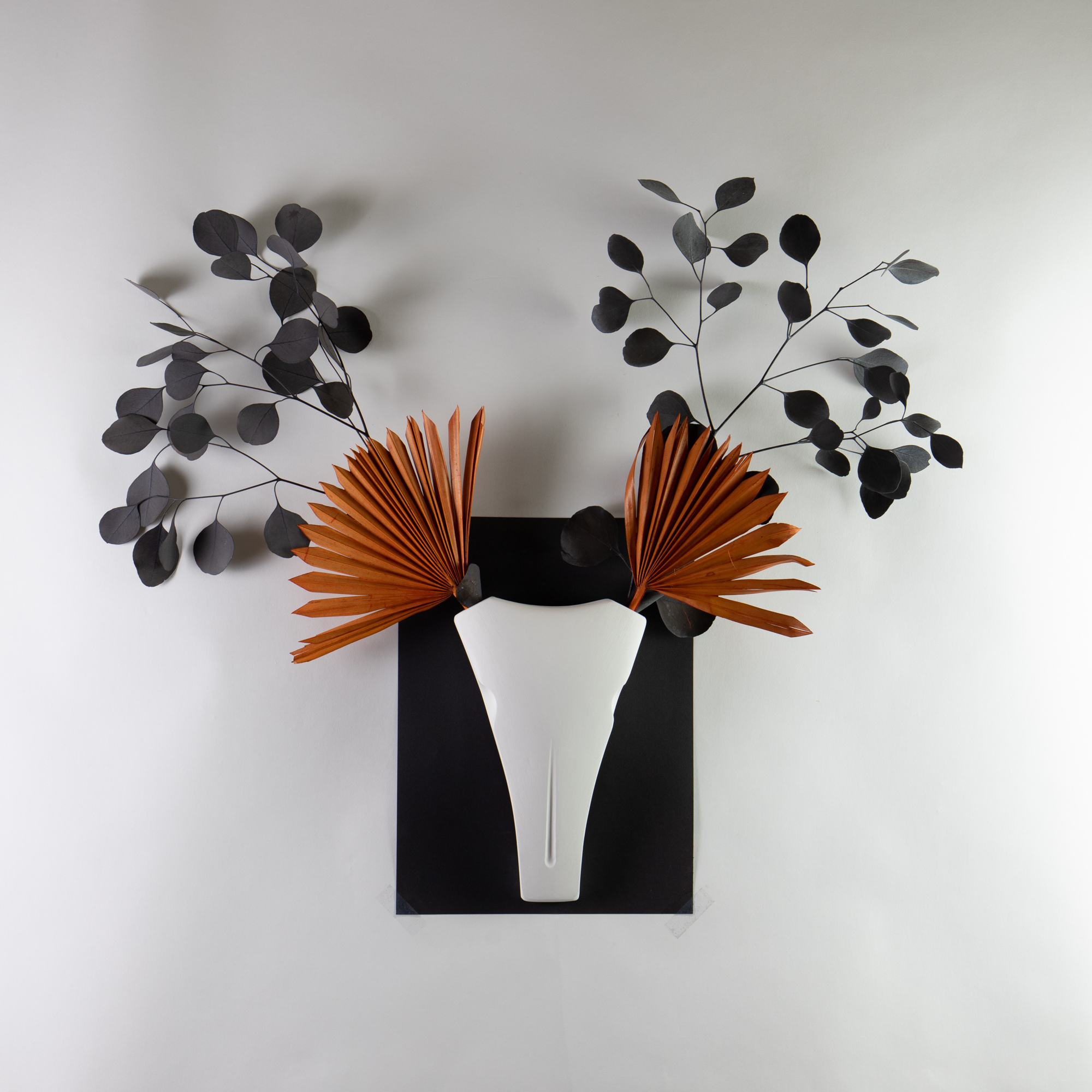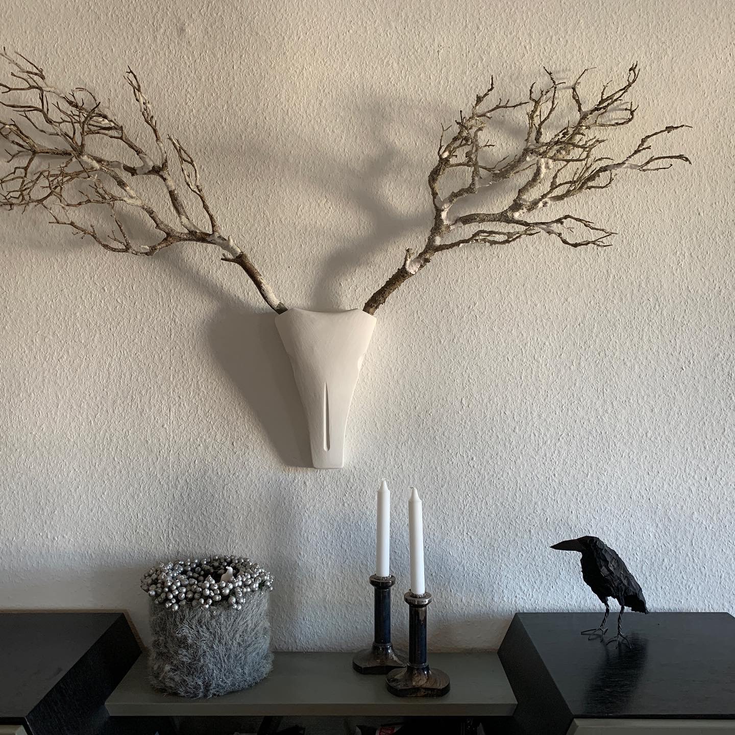 Ich liefere Dir den stilisierten Schädel, Du bringst ihn zum Leben: mit Ästen, Zweigen, Trockenblumen, Fundstücken aus dem Wald oder wilden Ideen aus dem Kopf.